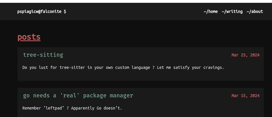 The theme is very simple with a almost empty homepage and a linux-shell like interface for the header.